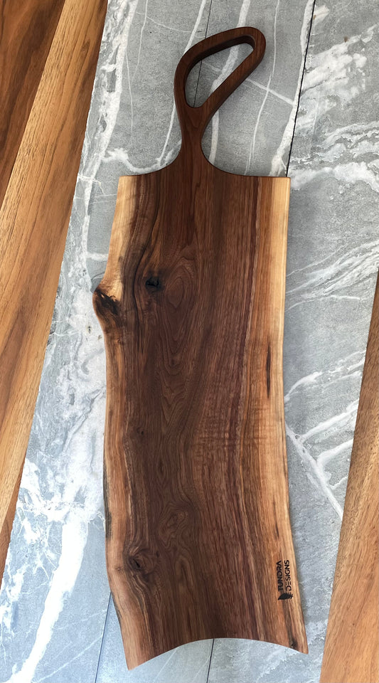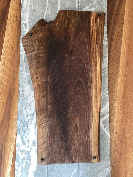 Live Edge Dark Walnut Charcuterie Board with Aviator Handle