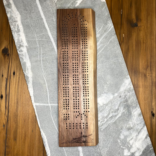 Light House Park Live Edge Black Walnut Cribbage Board
