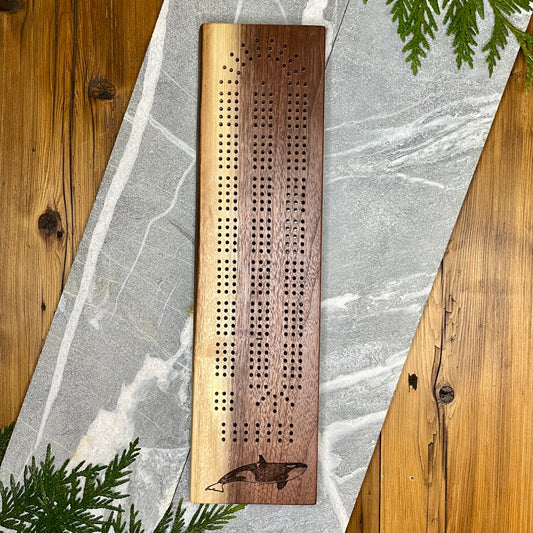 Mahogany Cribbage Board (Two Sisters / The Lions Mountain Peaks)
